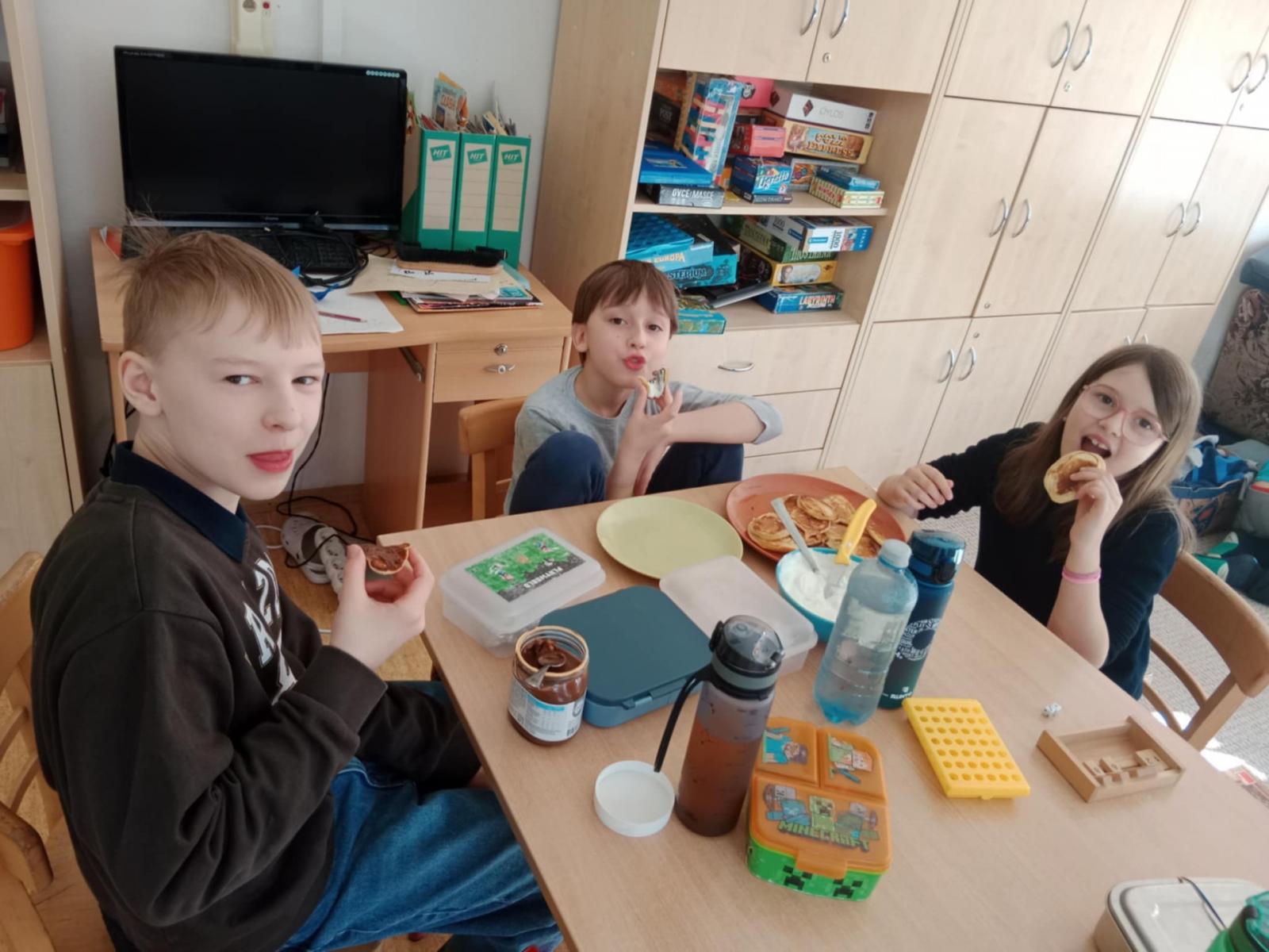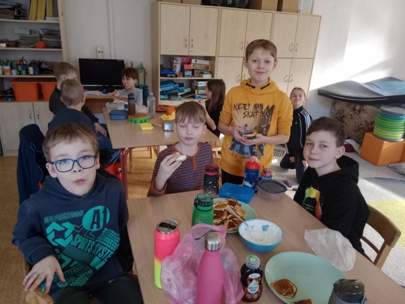 Žáci se rozdělili do skupin, nachystali si těsto na lívance, smažili a poté ta nejlepší část, vše sníst. Ze zbylých surovin byly dokonce i palačinky.