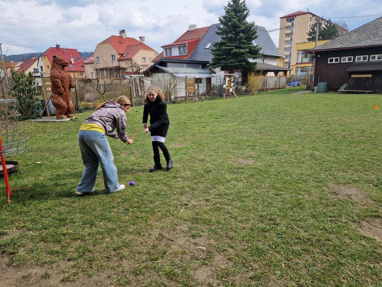 Ještě před Velikonocemi jsme stihli v hodině anglického jazyka vyrazit ven a přiblížit si některé britské velikonoční zvyky. Žáci si zahráli i pár velikonočních her, např. "Egg rolling".